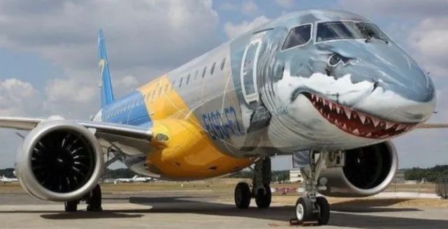 " W: C/ o/ `/ s) X 飞机涂装是在飞机表面涂上一层特殊材料,以达到防护或装饰的目的。它并不是像许多人想象的那样,只刷上两桶普通油漆就完事那么简单。它是一个庞大的系统工程,要选择适宜的涂料,设计合理的涂层,在良好的作业环境下,按照一定的工序来完成。本图中的鲨鱼这样凶猛的海洋生物,通常会被喷涂在战斗机的身上,以在战场上威慑敌人。如今,这架航空客机也变身鲨鱼,你还敢坐吗? , ~0 M' S+ e) m U. X0 R1 q