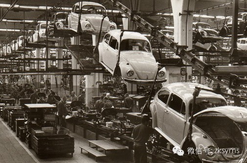 流程化:上图是大众汽车1969年的生产流水线,自动化程度比现今国内很多车厂的自动化程度都高。生产流程化的核心目的就是把生产过程切分成非常细小的片段,每个片段都遵循严格的顺序加工,片段之间用自动化的传动装置连接起来,每个片段简单到不需要人工操作的时候,就被机器取代了。另一个行业的例子,说起软件公司,大家都记得微软之类的美国公司,但是做流程软件最成功的却是德国的SAP,他们把企业(甚至非生产型组织)内部所有流程都固化到软件里面,把企业里面每个人都通过软件固化到一个功能,最后完成了企业的可靠高效运作,这就是流程化的威力。(我想企业里面用过SAP的ERP系统的人,特别是财务采购之类的肯定特别熟悉)